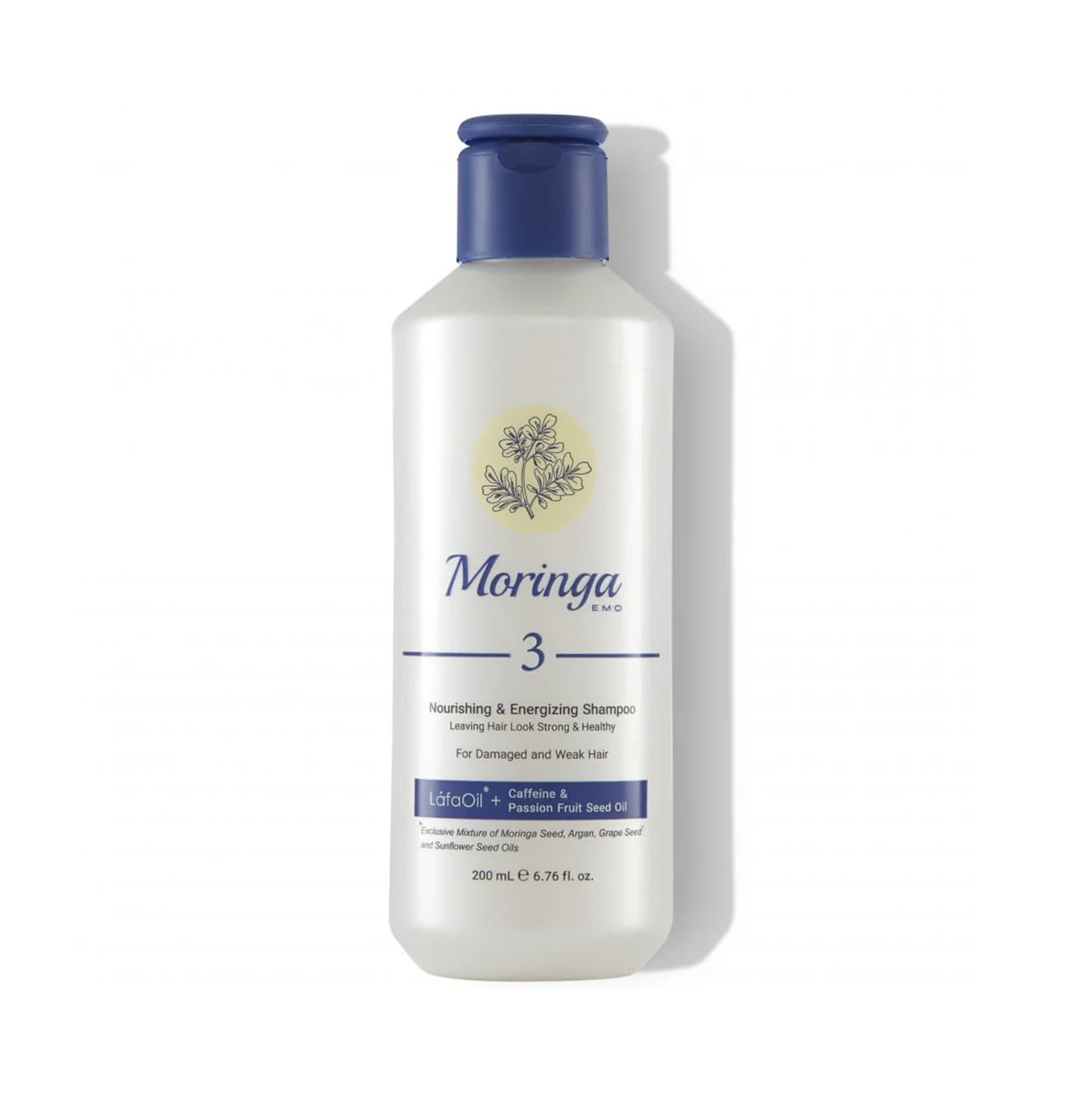 شامپو مغذی و انرژی بخش ۳ مورینگا امو مناسب موهای آسیب دیده و ضعیف است. این محصول برای تقویت موهای صدمه دیده استفاده میشود.
