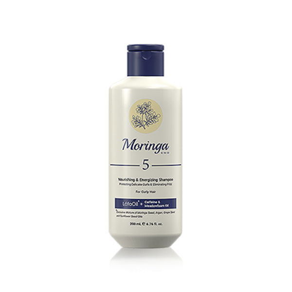 شامپو مغذی و انرژی بخش ۵ مورینگا امو مناسب موهای فر با خاصیت نرم کنندگی موجب رفع گره از موی فر شده و رطوبت مورد نیاز مو را تامین میکند. همچنین این شامپو تحریک رشد مو و جلوگیری از ریزش آن را نیز به دنبال دارد.
